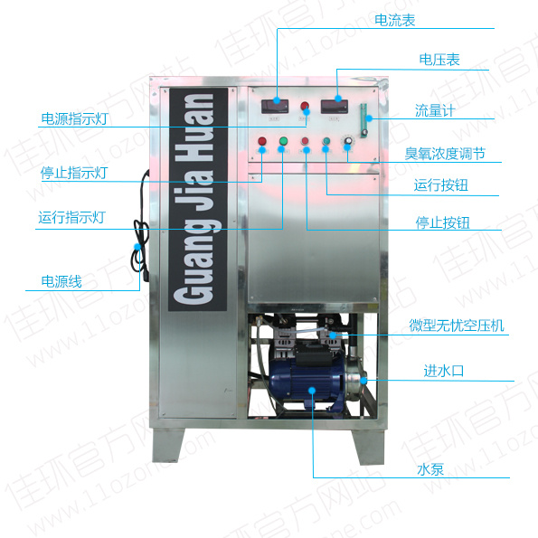 1、 水冷風冷雙冷設計 水冷冷卻臭氧發生管 風冷冷卻機器內溫度冷卻水0.2-0.3T/H